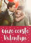 Leuke fotokaart met de tekst: Onze eerste valentijn.
