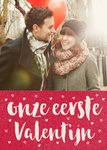 Leuke fotokaart met de tekst: Onze eerste valentijn.