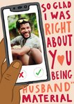 Leuke fotokaart met de tekst: So glad I was right about you being husband material.