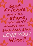 Valentijnsdag is er niet alleen voor geliefden. Stuur ook jouw best friend forever een lieve valentijnskaart. Op deze kaart staat de tekst: best friends are like stars, you don't always see.. blah blah blah Love you! Wine?