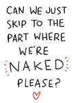 Grappige Valentijnskaart met de tekst: Can we just skip to the part where we're naked please?