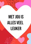 Op deze leuke valentijnskaart staat: Met jou is alles veel leuker.