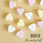 Lieve Valentijnskaart met snoepjes en de tekst: Snoepje ik vind je lief.