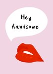 Leuke valentijnskaart om naar je valentijn te sturen met op de kaart lippen en de tekst: Hey handsome.