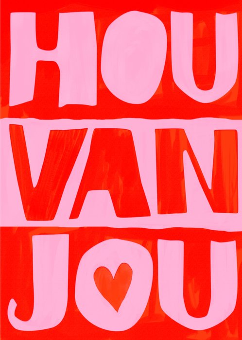 Kleurrijke valentijnskaart met een roze en rode achtergrond en de grote tekst: 'Hou van jou'. Verras iemand met deze typografische valentijnskaart van Greetz.