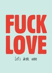 Een leuke valentijnskaart met de quote 'Fuck love, let's drink wine'