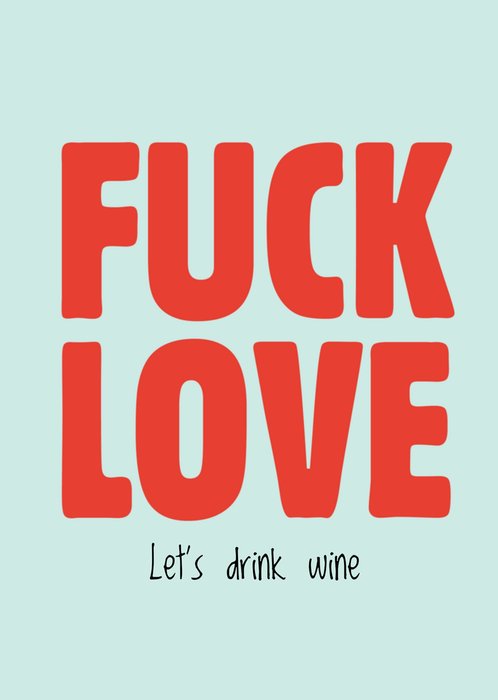 Een leuke valentijnskaart met de quote 'Fuck love, let's drink wine'