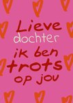 Lieve valentijnskaart om naar je dochter te sturen met valentijn om haar te laten weten dat je trots op haar bent met de tekst: Lieve dochter ik bent trots op jou.