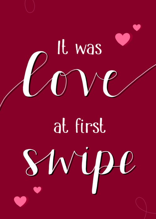 Super lieve valentijnskaart om naar je valentijn te sturen die je online ontmoet hebt met de tekst: It was love at first swipe. Wenskaart van Greetz ontworpen door Greetz designers, volgens de laatste trends. Voeg je eigen foto('s), tekst & versiering toe om de kaart extra persoonlijk te maken. Je kunt de kaart toevoegen aan je favorieten of tussentijds opslaan om deze later af te maken. Toch liever een ander design? Bekijk alle valentijnskaarten.