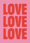 Lieve valentijnskaart met de tekst: LOVE LOVE LOVE