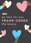 Valentijn komt eraan en dat betekent dat jij je geliefde kunt verrassen met een leuke valentijnskaart. Op deze valentijnskaart van Greetz staat: [naam] My love for you trans-cends the binary.