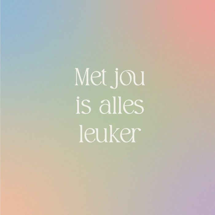 Typografische valentijnskaart met een kleurrijke achtergrond en de tekst: 'Met jou is alles leuker'. Verras iemand met deze lieve valentijnskaart van Greetz.