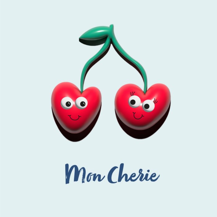 3D valentijnskaart met kersen en de tekst: 'Mon cherie'. Verras iemand met deze leuke valentijnskaart van Greetz.