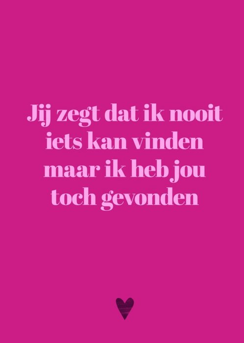 Verras met deze grappige Valentijnskaart met de tekst: 'Jij zegt dat ik nooit iets kan vinden maar ik heb jou toch gevonden.'