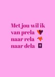 Verras met deze grappige Valentijnskaart met de tekst: 'Met jou wil ik van prela, naar rela, naar dela.'