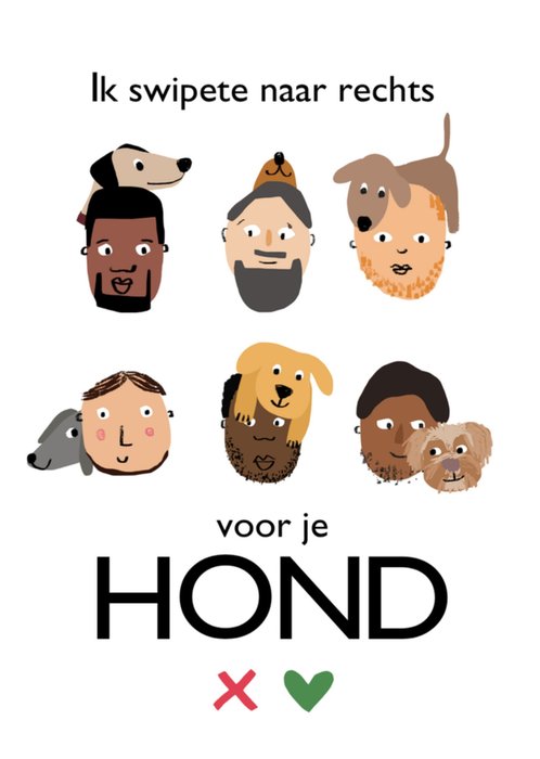Grappige Valentijnskaart met hondjes en de tekst: Ik swipete naar rechts... voor je hond.