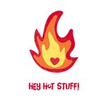 Grappige valentijnskaart met een vlammetje en de tekst: Hey hot stuff!