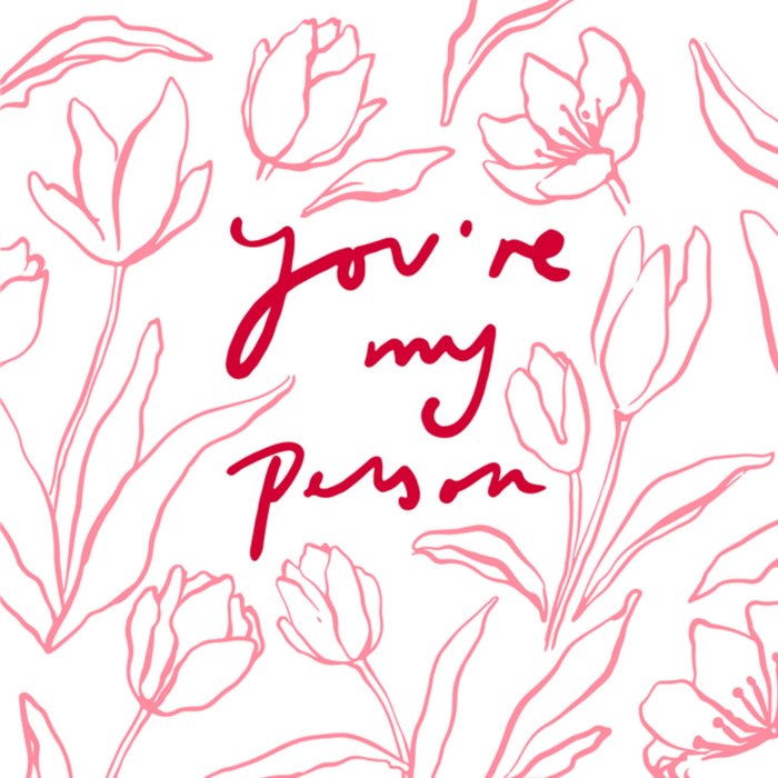 Illustratieve valentijnskaart met tulpen en de tekst: 'You're my person'. Verras iemand met deze lieve valentijnskaart van Greetz.