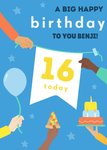 Wens een fijne verjaardag met deze leuke verjaardagskaart van Greetz. Op de kaart staat: A big happ birthday to you [naam] 16 today.