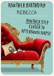 Wat leuk, jij kent iemand die binnenkort weer kaarsjes mag uitblazen. Verras met deze leuke verjaardagskaart van Greetz! Op de kaart staat: Another birthday [naam]. Another step closer to afternoon naps!