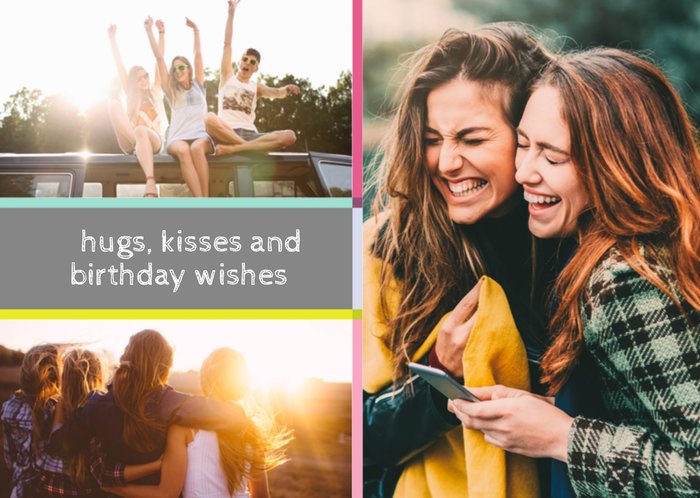 Wens een fijne verjaardag met deze leuke verjaardagskaart van Greetz. Op de kaart staat: Hugs, kisses and birthday wishes.