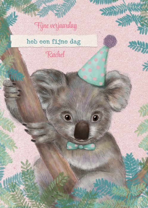 Jij kent iemand die binnenkort jarig is. Stuur daarom deze leuke verjaardagskaart van Greetz! Op deze vrolijke kaart staat een koala en de tekst: Fijne verjaardag heb een fijne dag [naam].