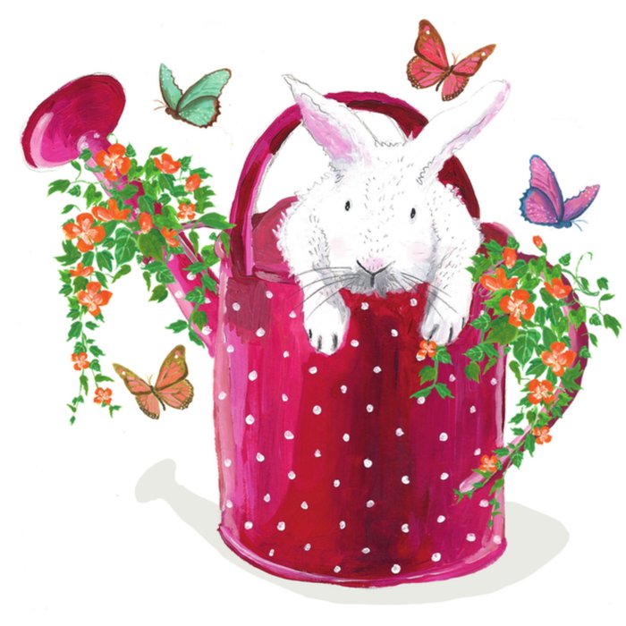 Stuur deze leuke verjaardagskaart van Greetz! Op de verjaardagskaart staat een konijntje in een gieter.