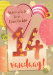 Wat leuk, jij kent iemand die binnenkort weer kaarsjes mag uitblazen. Verras met deze leuke verjaardagskaart van Greetz! Op de kaart staat: Voor een hele lieve kleindochter. 14 vandaag!