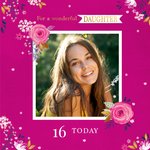 Tover een glimlach op iemands gezicht met deze leuke verjaardagskaart van Greetz! Op de verjaardagskaart staat: For a wonderful daughter. 16 today.