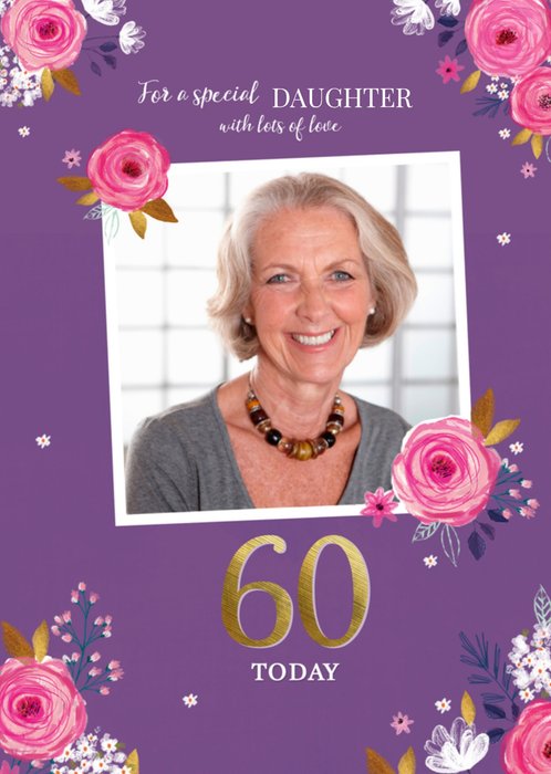 Tover een glimlach op iemands gezicht met deze leuke verjaardagskaart van Greetz! Op de verjaardagskaart staat: For a special daughter and lots of love. 60 today.