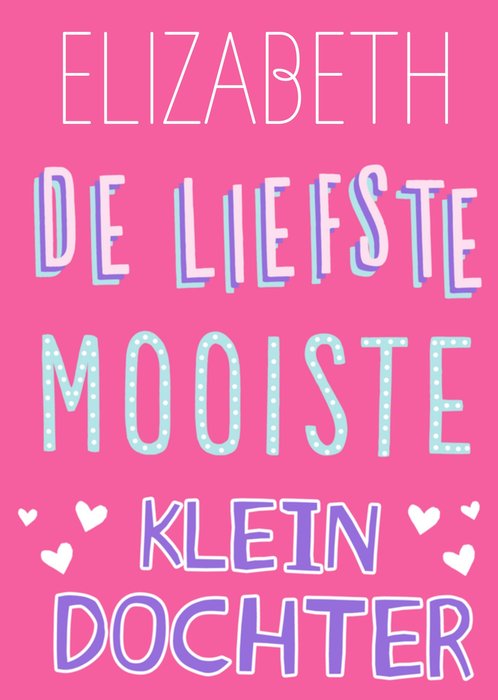 Jij kent iemand die binnenkort jarig is. Feliciteer met een leuke verjaardagskaart van Greetz! Op deze kaart staat [Naam] De liefste mooiste kleindochter.