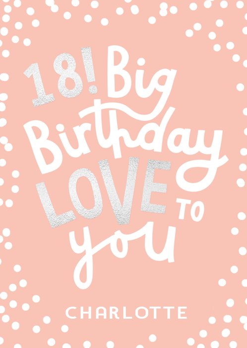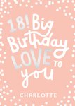 Er is er een jarig! Stuur daarom een verjaardagskaart van Greetz! Op deze leuke verjaardagskaart staat: 18! Big birthday love to you. Je kunt een naam toevoegen.