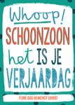 Feest is het! Want jij kent iemand die binnenkort de vlaggen uithangt! Stuur deze leuke verjaardagskaart van Greetz als verrassing. Op de kaart staat: Whoop schoonzoon! Het is je verjaardag.