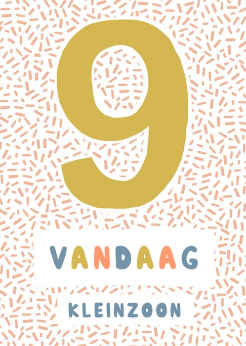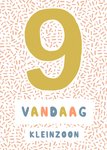 Iemand die jarig is, is altijd leuk. Want hoe leuk is het om te verrassen met een leuke verjaardagskaart van Greetz! Op deze vrolijke verjaardagskaart staat: 9 vandaag kleinzoon.