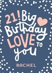 Er is er een jarig! Stuur daarom een verjaardagskaart van Greetz! Op deze leuke verjaardagskaart staat: 21! Big birthday love you. Je kunt een naam toevoegen.