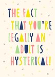 Wens een fijne verjaardag met deze leuke verjaardagskaart van Greetz. Op de kaart staat: The fact that you're legally an adult is hysterical!
