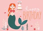 Wens een fijne verjaardag met deze leuke verjaardagskaart met zeemermin. Op de kaart staat: Happy birthday.
