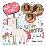 Feest is het! Want jij kent iemand die binnenkort de vlaggen uithangt! Stuur deze leuke verjaardagskaart van Greetz als verrassing. Op de kaart staat: Hiep hiep hoera kleindochter.