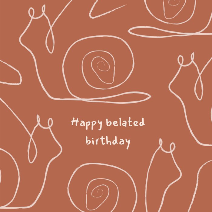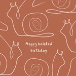 Iemand vergeten te feliciteren? Dan is deze kaart geschikt om alsnog te versturen. Verras iemand met deze leuke hippe kaart met een leuke woordgrap. Op de kaart zie je slakken en de tekst happy belated birthday!