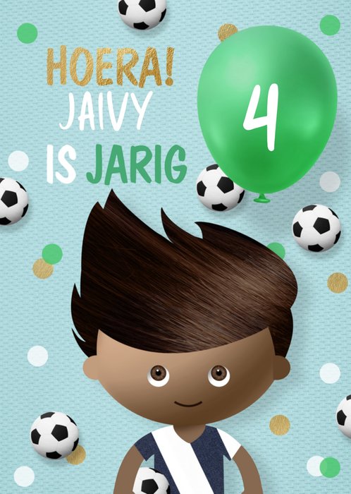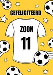 Jij kent iemand die binnenkort jarig is. Feliciteer met een leuke verjaardagskaart van Greetz! Op deze kaart staat een voetbalshirt en de tekst: Gefeliciteerd zoon. Je kunt ook een leeftijd toevoegen.