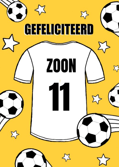 Jij kent iemand die binnenkort jarig is. Feliciteer met een leuke verjaardagskaart van Greetz! Op deze kaart staat een voetbalshirt en de tekst: Gefeliciteerd zoon. Je kunt ook een leeftijd toevoegen.