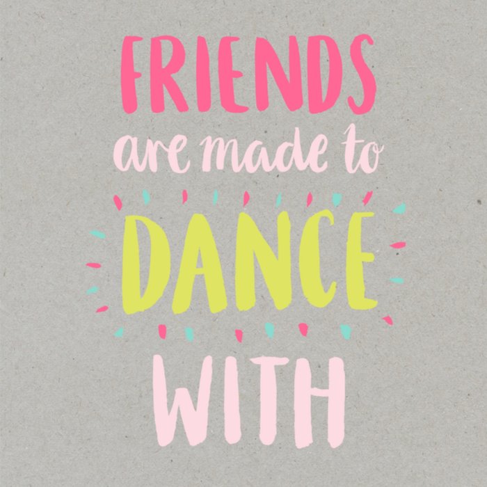 Tover een glimlach op iemands gezicht met deze leuke verjaardagskaart van Greetz! Op de verjaardagskaart staat: Friends are made to dance with.
