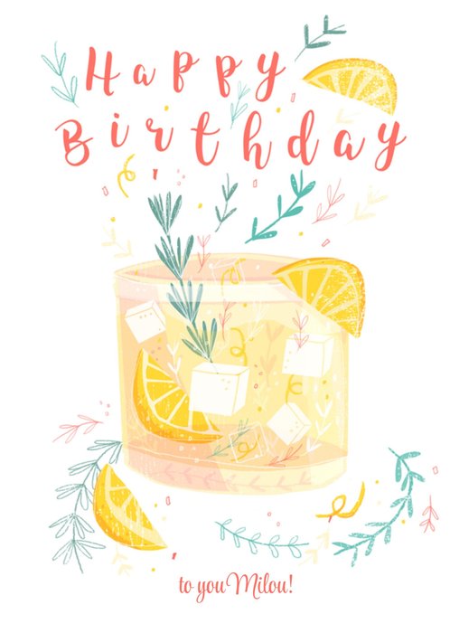 Hoera! Iemand is jarig. Stuur daarom deze verjaardagskaart van Greetz! Op deze verjaardagskaart staat een drankje en de tekst: Happy birthday to you [naam].