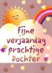 Feest is het! Want jij kent iemand die binnenkort de vlaggen uithangt! Stuur deze leuke verjaardagskaart van Greetz als verrassing. Op de kaart staat: Fijne verjaardag prachtige dochter.