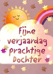 Feest is het! Want jij kent iemand die binnenkort de vlaggen uithangt! Stuur deze leuke verjaardagskaart van Greetz als verrassing. Op de kaart staat: Fijne verjaardag prachtige dochter.