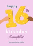 Mooie verjaardagskaart om je dochter mee te verrassen. Op de kaart staat: Happy 16th birthday daughter. Have a special day Khalani. De naam is aanpasbaar.