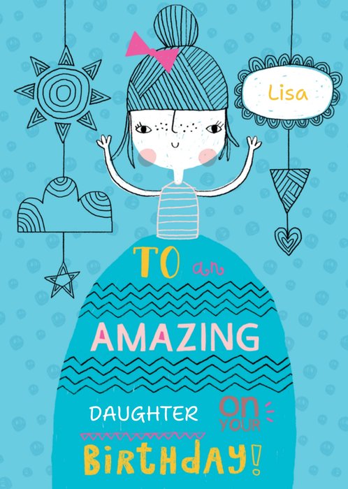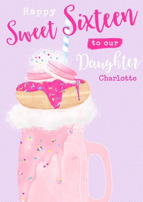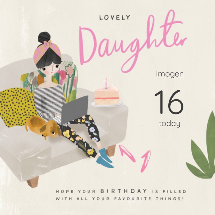 Mooie verjaardagskaart om je dochter mee te verrassen. Op de kaart staat: Happy 16th birthday daughter. Have a special day Khalani. De naam is aanpasbaar.