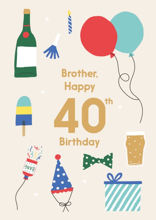 Leuke verjaardagskaart voor een 21 jarige broer. Met champagne, bier en pizza.