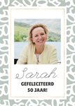 Leuke verjaardagskaart om een echt Sarah een fijne verjaardag mee te wensen met de tekst: Sarah gefeliciteerd 50 jaar! Je kunt een eigen foto toevoegen.