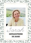 Leuke verjaardagskaart om een echt Sarah een fijne verjaardag mee te wensen met de tekst: Sarah gefeliciteerd 50 jaar! Je kunt een eigen foto toevoegen.